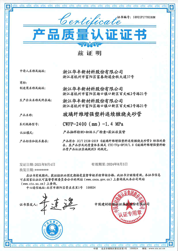 浙江制造證書-連續(xù)纏繞玻璃鋼