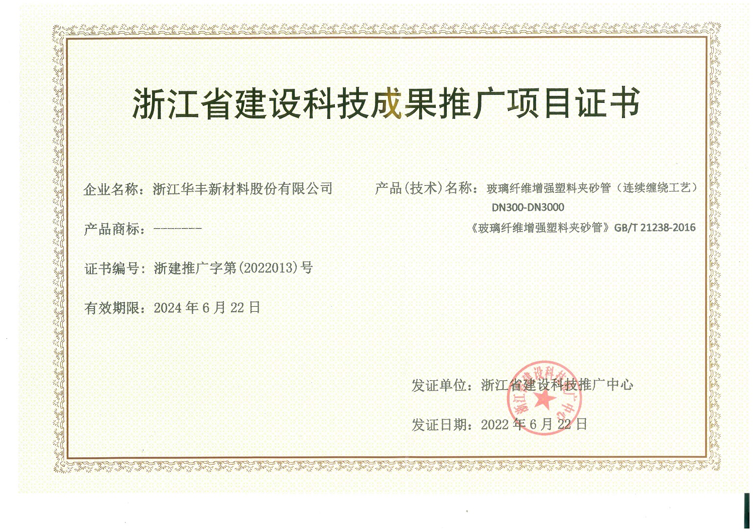 浙江省建設科技成果推廣項目證書