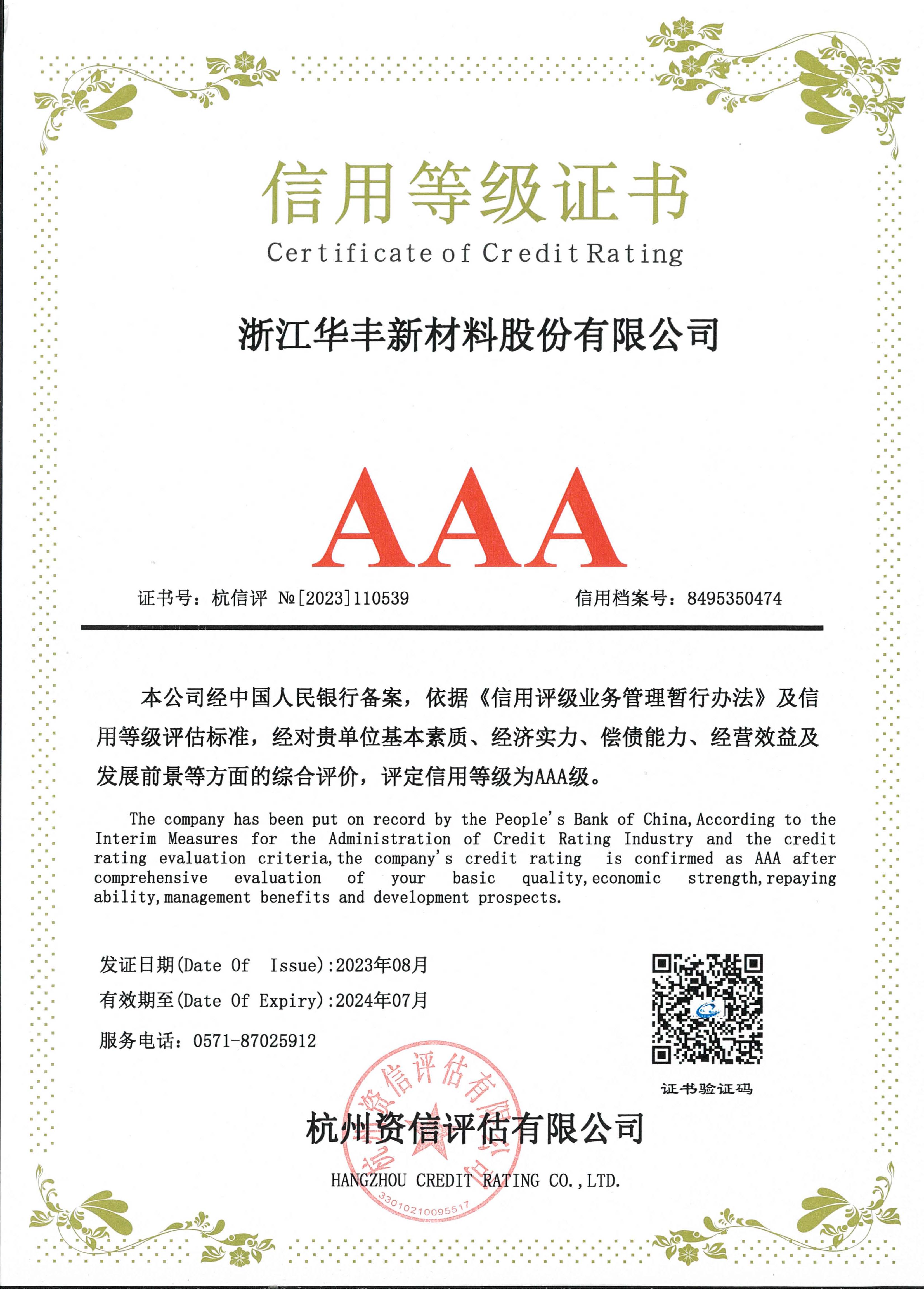 信用等級證書